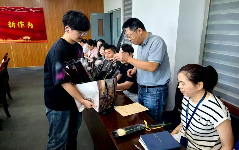 “收到鲜花特别惊喜,学生的心意让我觉得所有付出都值得。”很多老师接过鲜花时,脸上满是欣慰。活动中,不少同学还附上了手写贺卡,字里行间满是对老师课堂教诲、生活关怀的感念。