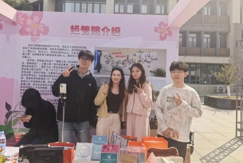 近日,在泰州职业技术学院校园开放日期间,经济与管理学院携手校企合作单位开展“樱花季·电商直播”技能展示活动。