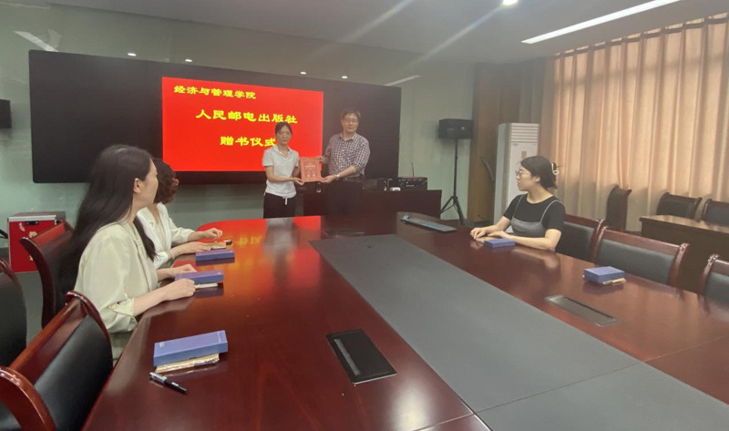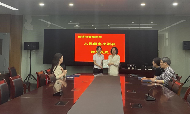 5月20日下午,经济与管理学院举行人民邮电出版社赠书活动,经管院党总支书记韩翔、院长陈玉等人出席本次捐赠仪式,并代表学院接收捐赠图书。韩书记在仪式上对人民邮电出版社表示了衷心的感谢,随后双方就学科专著出版和规划教材热门方向等领域问题进行了细致交流。