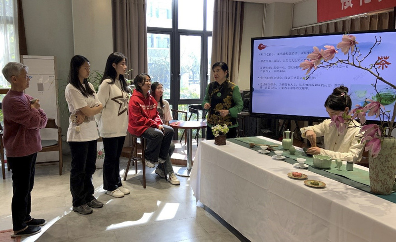 活动现场,茶艺大师身着传统茶服展示茶艺绝活,手法娴熟,每一个动作都充满了艺术感,宋代点茶、沏茶、赏茶、饮茶,一气呵成。程老师还穿插文化知识讲座,介绍茶的种类、制作工艺以及品茶技巧,和大家进行互动交流,企业家和经管院师生亲身感受到茶文化的魅力,领略到了中国茶文化的博大精深。